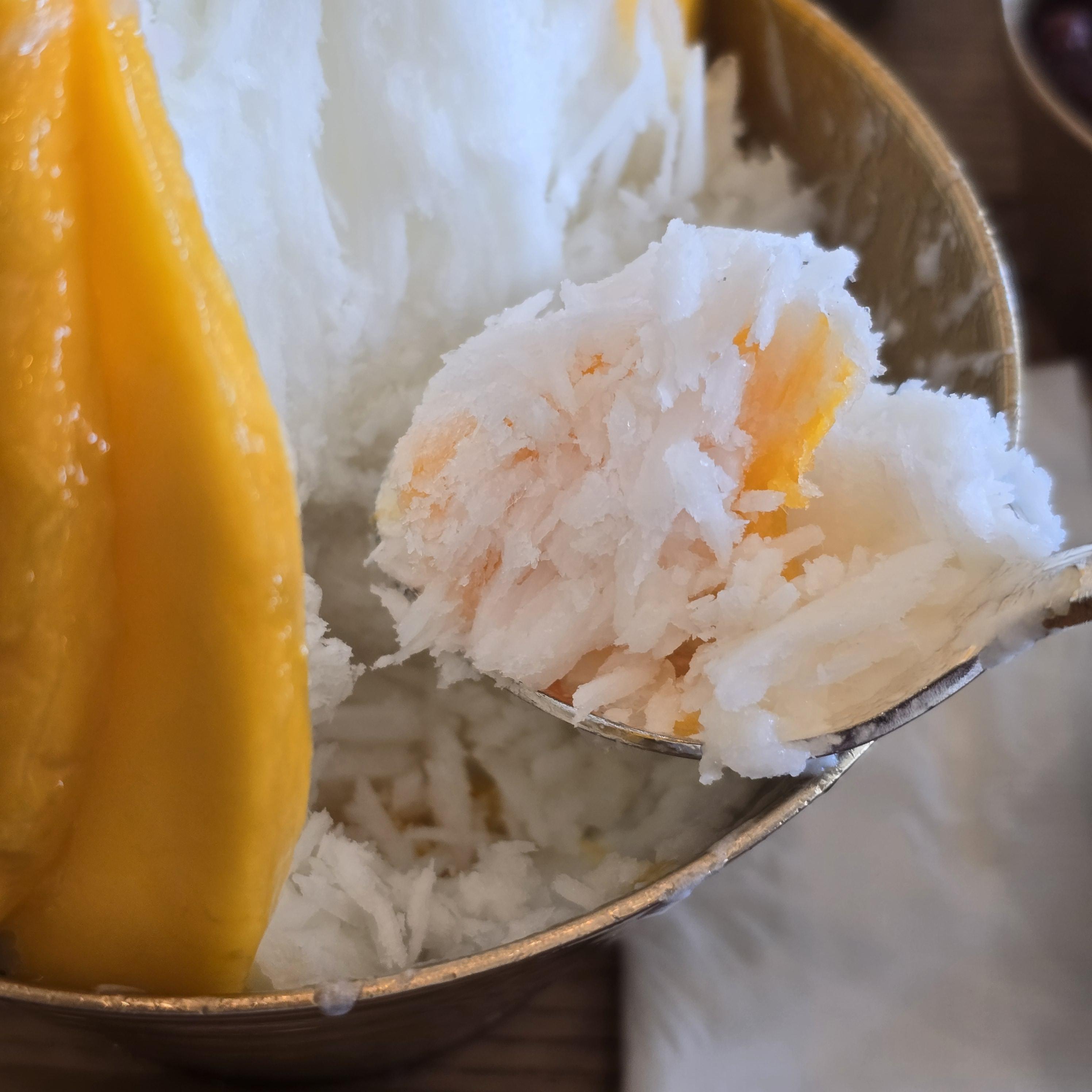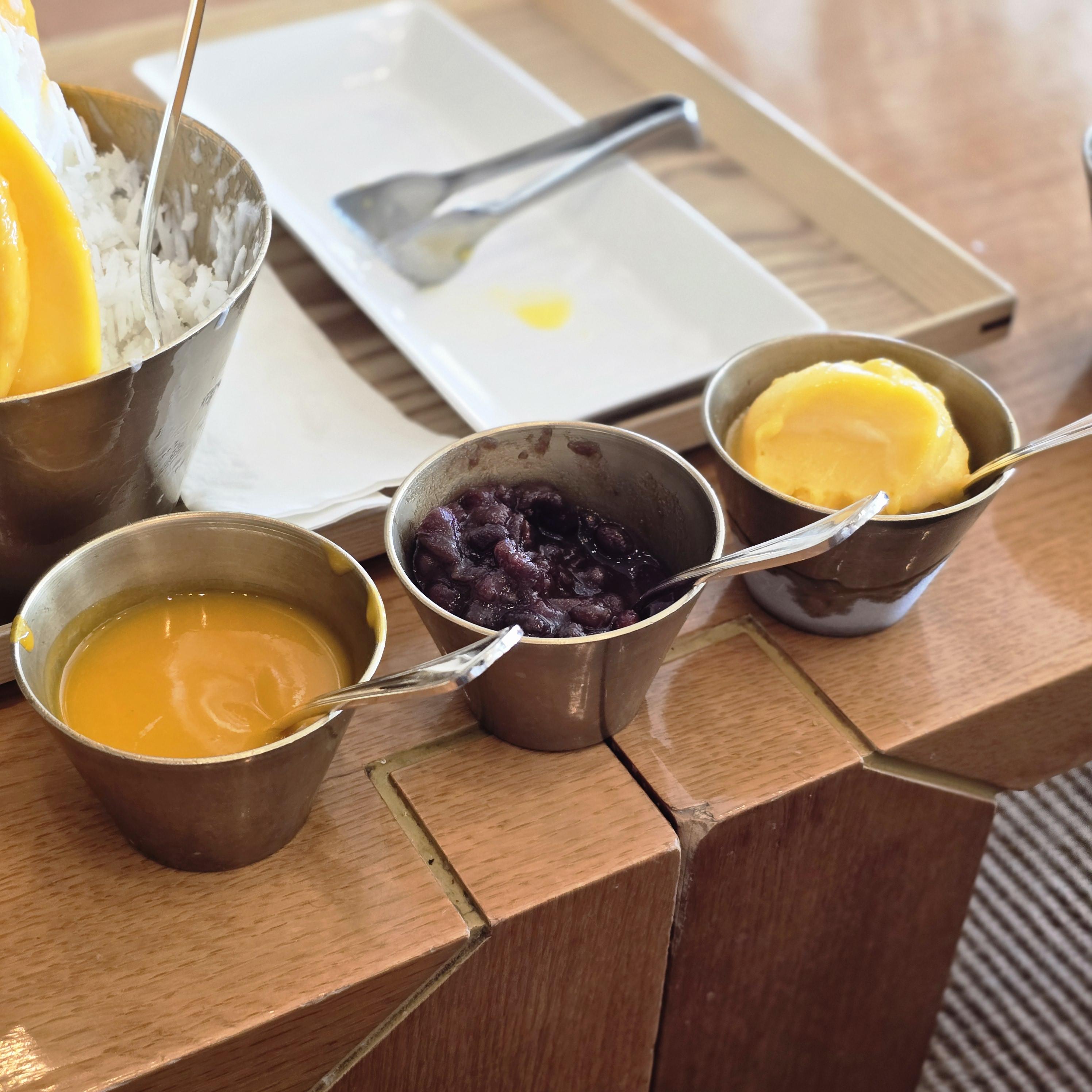 같이 주는 망고 샤베트, 망고 소스???, 팥이 있는데