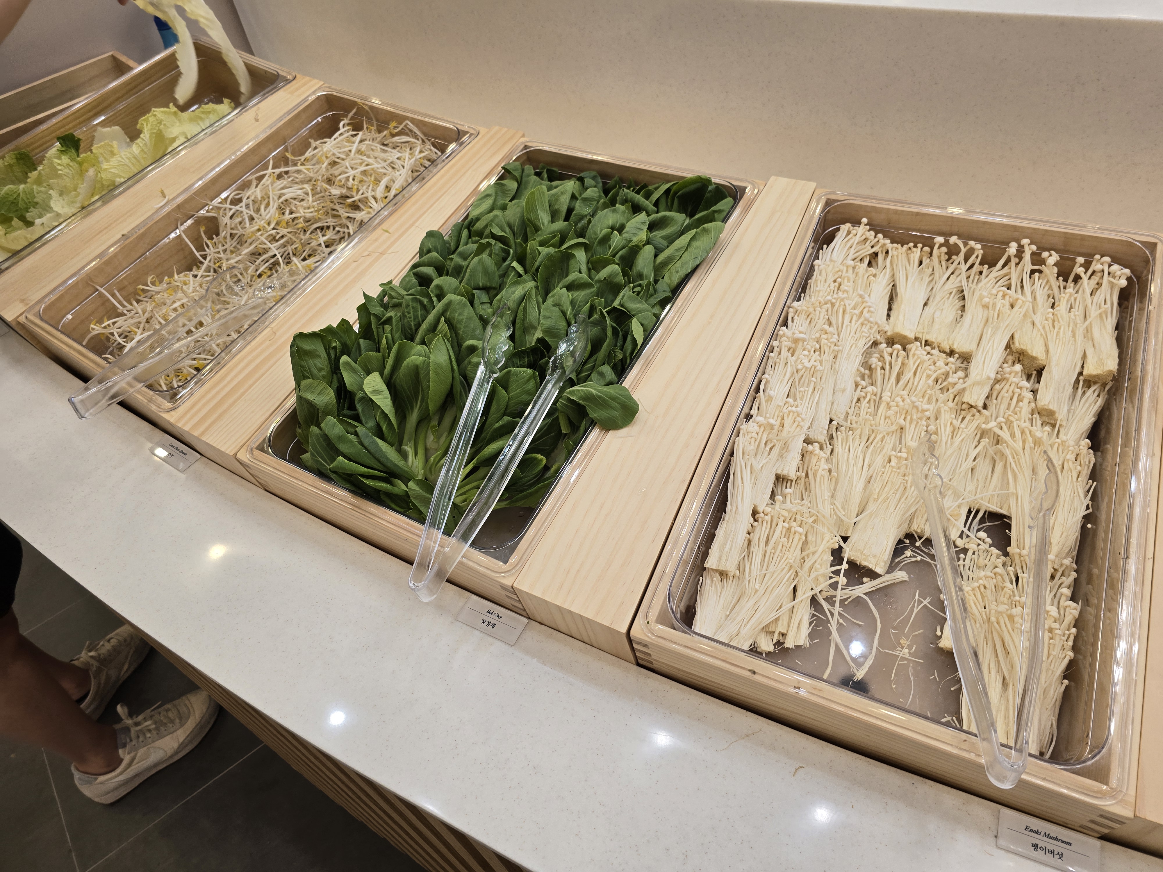 샤브샤브 야채도 진짜 너무 신선한데 뷔페에서 제공되는 코스에 정말 다양한 야채가 훨씬 많아요!!