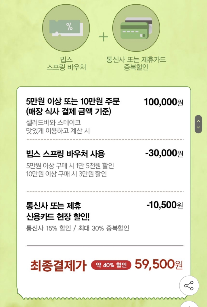5만원당 15000원 바우처 1개! 최대 2장까지 사용할 수 있는 바우처를 판매중이네요~