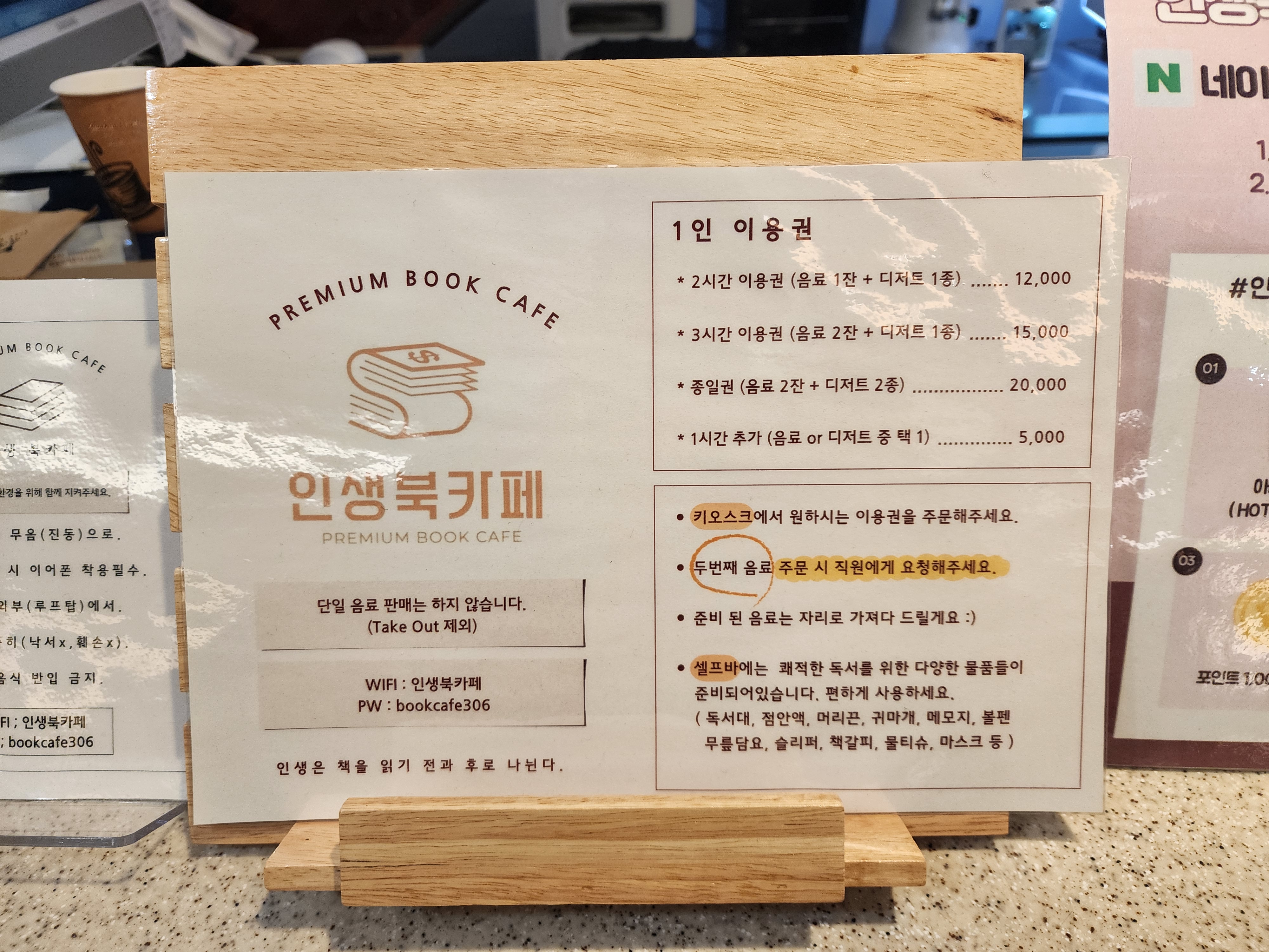 이용권은 2시간, 3시간, 종일권으로 있는거 같구 시간 추가도 되네요! 쿠키랑 음료가 포함된가격입니다
