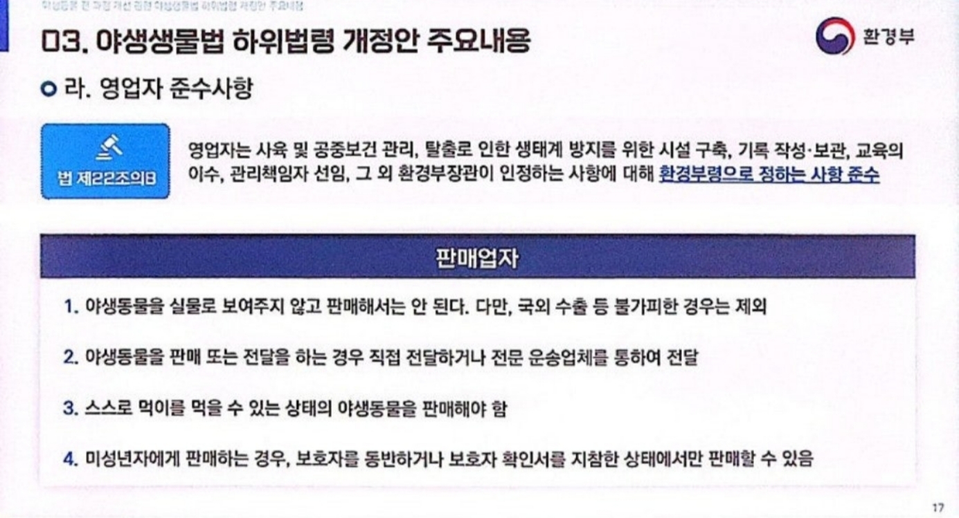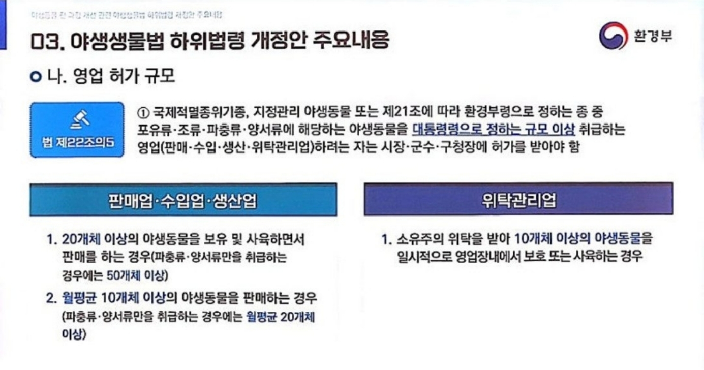그런데 위 내용들은 한 종만 키우는 기준 50마리 이상, 월 평균 20마리 이상일 경우에 해당되는 내용입니다.
