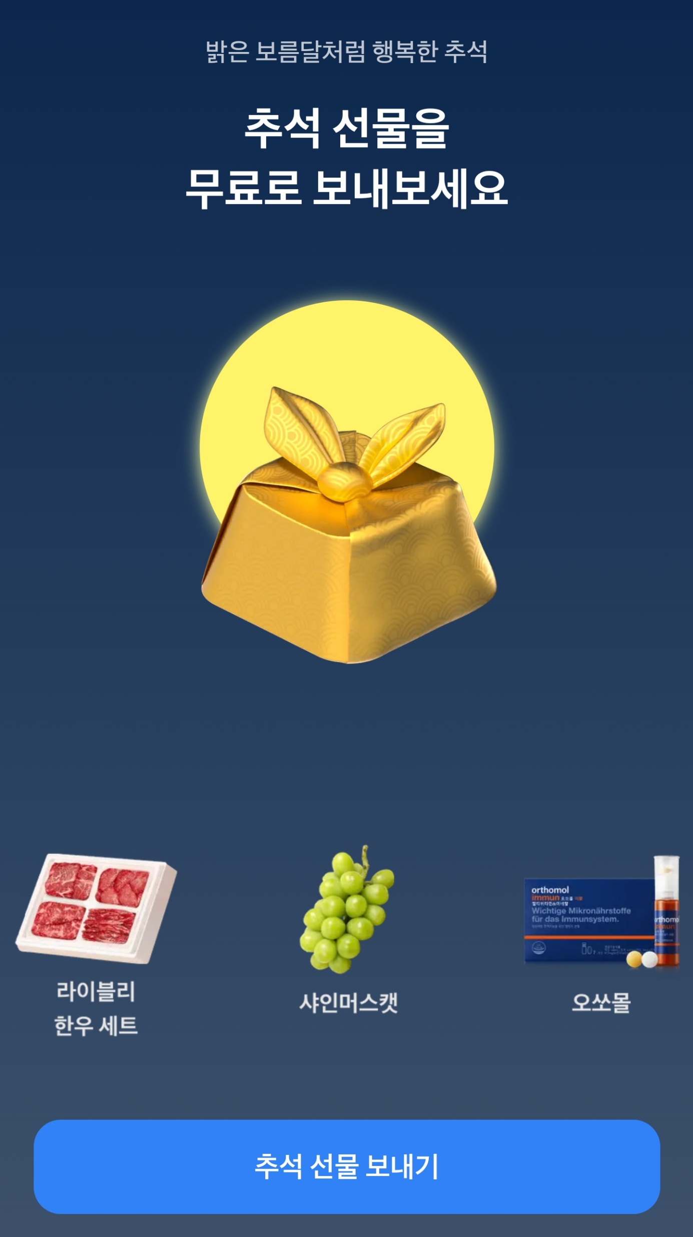 토스에서 추석 명절 전에 선물 이벤트를 진행 하네요! 9.13 금요일 까지 진행되는데요, 아래 링크를 통해서 선물 확인하고 친구에게 보낼 수 있어요!